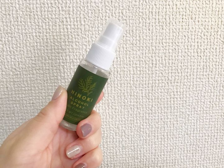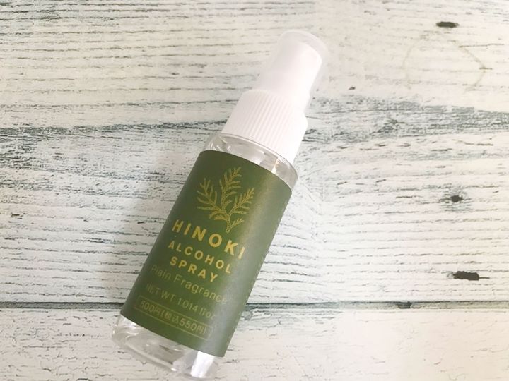 スプレーするとアルコール臭ではなく、ヒノキの香りがほんのり香るのが特徴です。