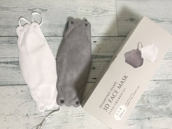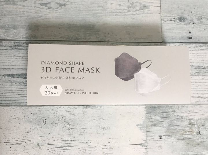 「ダイヤモンド型立体形状マスク 20枚入り」(330円)は人気のダイヤモンド型の3Dマスクです。まだまだマスクが手放せないご時世、毎日使うものはコスパ良く、快適に使えるものがいいですよね。このダイヤモンド型立体形状マスクはそんな願いをかなえてくれます。
