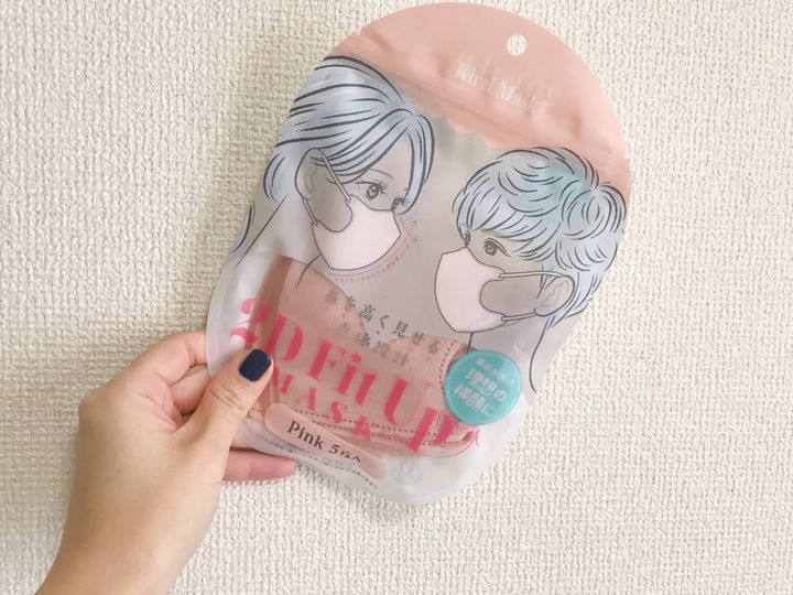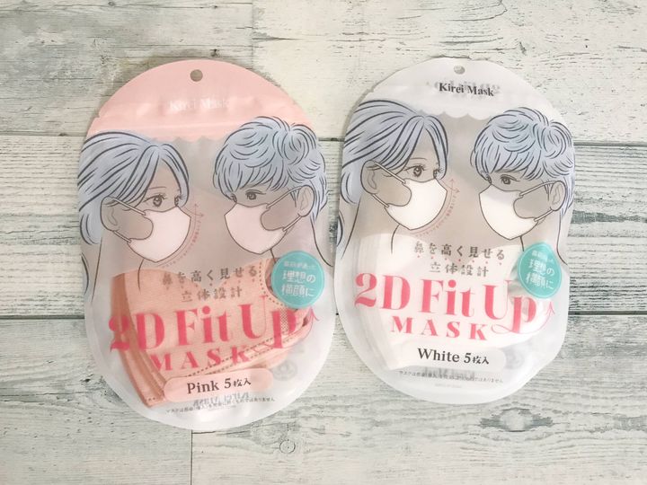 SNSで話題の「2D Fit Up MASK」(110円)。5枚入りで110円なので、コスパも悪くないです。筆者が購入した店舗では、ピンクとホワイトが販売していたのですが、他にもパープル・ベージュがあります。