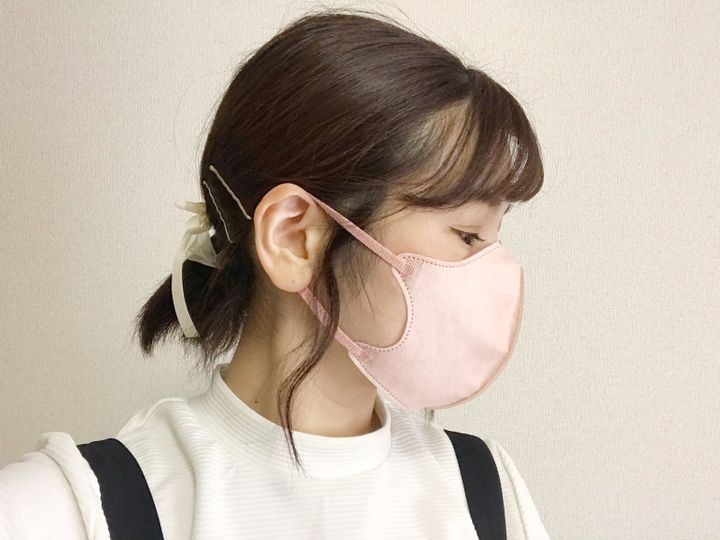 口元の空間が広いので呼吸がしやすいのも印象的でした。耳ゴムも5mm幅とやや太めのソフトなゴムを採用しているので、耳が痛くなりにくいですよ。シルエットだけでなく、使用感も心地よいマスクです。