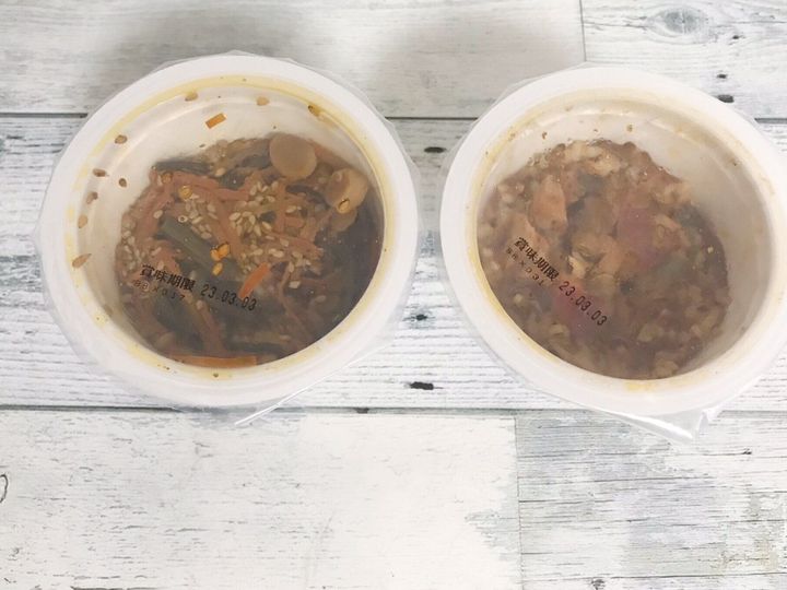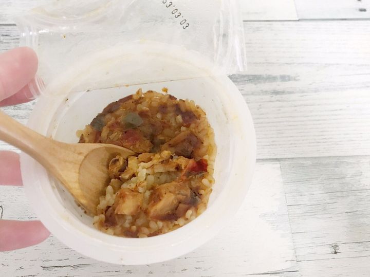 辛味の中にごま油の風味を感じることが出来る1品です。山菜ミックス・人参が具材になっていて、ちょぴりヘルシーな印象です。こちらもパエリアと同じく内容量160gですが、実際に食べてみるとそれ以上に感じるほどの満腹感を味わえます。