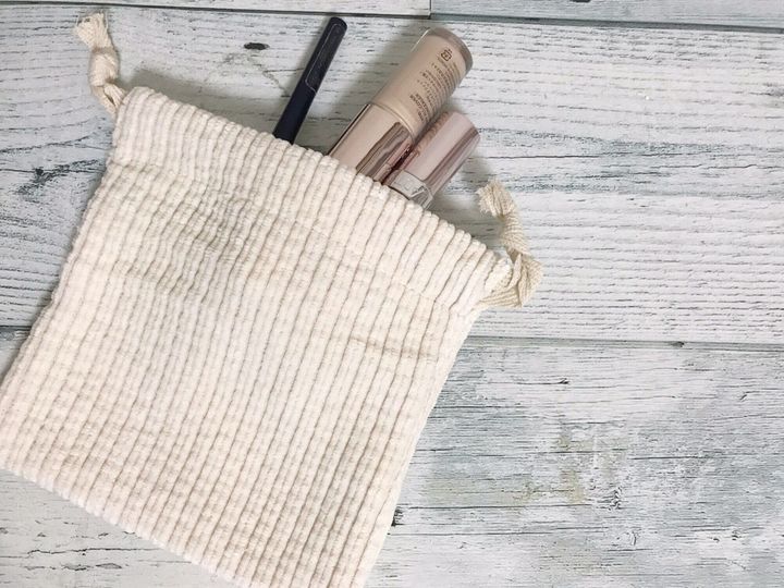 この巾着のおすすめのポイントは小さめサイズという点。コーデュロイの巾着は約横13×縦11cm(紐部分除く)。お直し用のリップやアイライナーなどコンパクトなコスメをかさばらずに一つにまとめられるのでかばんの中がごちゃごちゃしません。ポーチが大きすぎると鞄がいっぱいになってしまいますが、巾着自体が小さいのでとても使い勝手が良いです。アクセサリーなどを入れるのにもおすすめです。