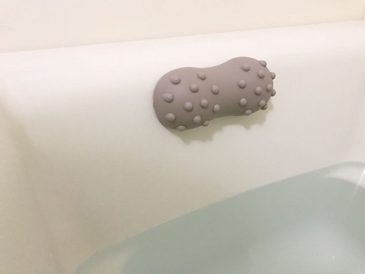 使い方はとても簡単。マッサージしたい部分にあたるように浴槽に張り付けるだけ。あとは自分の体重を乗せて気持ちいい力加減でセルフマッサージ。後ろに吸盤がついているので浴槽に簡単に貼りつきます。浴槽につかりながらなので体も温まり血行がいいからか、めちゃくちゃ気持ちいい! マッサージやもみほぐしを受けるのが好きな人はきっとハマるはず。