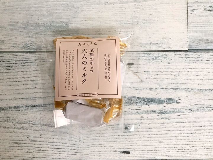 「おかしもん 至福のチョコ 大人のミルク」(324円)。コクのあるまろやかな甘さとカカオの風味が際立つミルクチョコレートはデパ地下スイーツに負けないリッチな味わいを楽しめます。甘いチョコレートが苦手な人でも食べやすいカカオ70%のチョコレートなども販売していたので、好みの甘さを選べるのもおすすめポイントです。