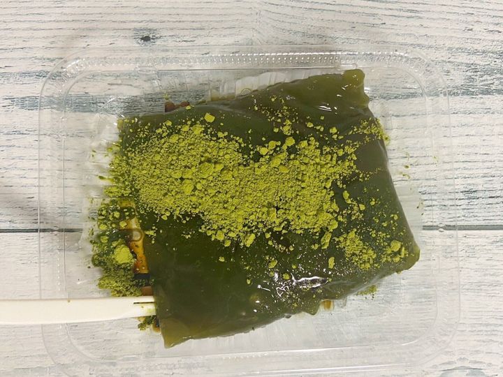 「素材の風味を生かした わらび餅 宇治抹茶」はきな粉にも京都宇治田原産の抹茶を使用しているので、かなり濃厚な抹茶の味を楽しむことが出来ます。京都の抹茶カフェに出てきてもおかしくないようなクオリティです。ちょっぴり大人な味の印象なので子どもは苦手かも。