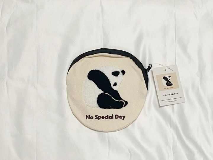 前屈しているパンダが刺繍されている「上野パンダ刺繍ポーチ」(330円)は、直径約15cmのラウンド型のポーチ。お直し用のコスメ・ハンドクリームや除菌クリーム、絆創膏などの衛生用品・お菓子……など細々したものを持ち歩く時に重宝します。やや薄い生地感のポーチなのでガジェットアイテムなどを収納するのには不向きかも……。