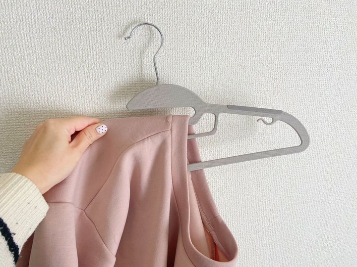 ハンガー自体の厚みが薄いので、クローゼットがすっきりするという工夫もされています。6本で330円とコスパも良いので、おうちのハンガーをすべて交換するというのもアリ!