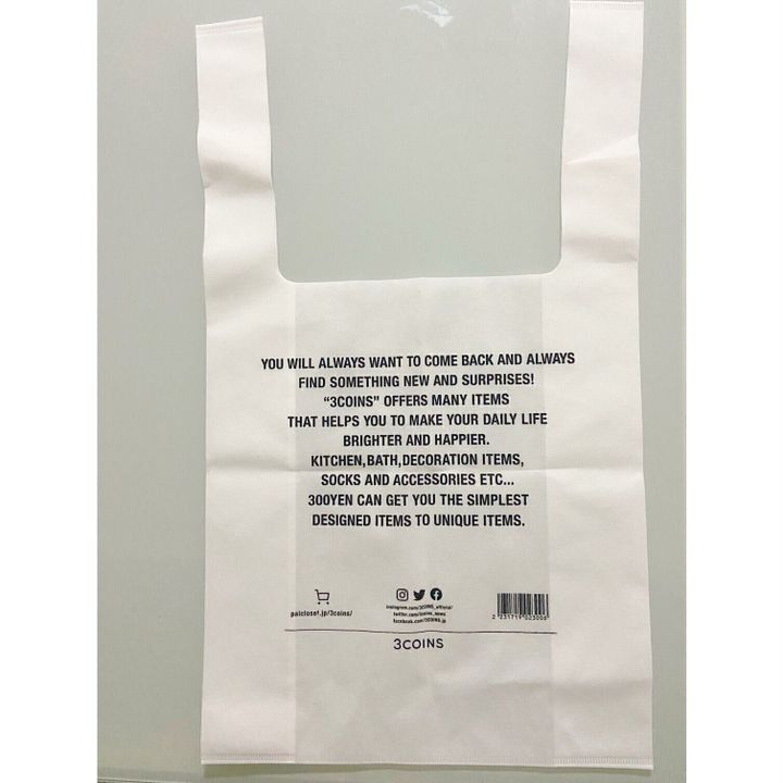購入する際は、3COINSのレジで不織布エコバッグだけでも販売してくれるので店員さんに問い合わせてみて下さいね。