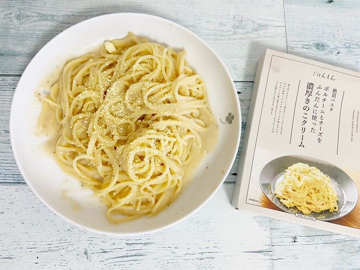 「絶頂パスタ ポルチーニとチーズをふんだんに使った 濃厚きのこクリーム」(270円)はその名の通り濃厚で自宅で再現するのは難しい!チーズ好きにはたまらないパスタソースです。