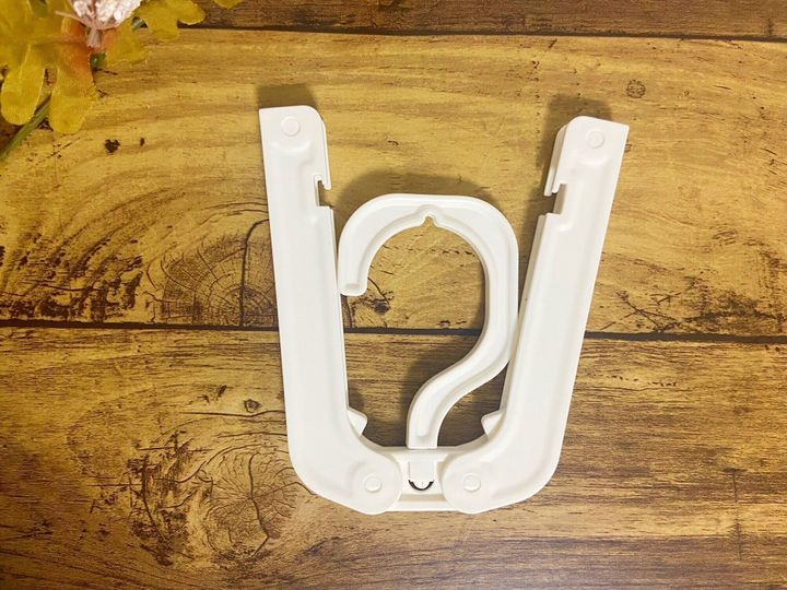 使用するときは、折りたたんであるハンガーを左右に開き使います。1段階目は子ども用サイズくらいの短さ。