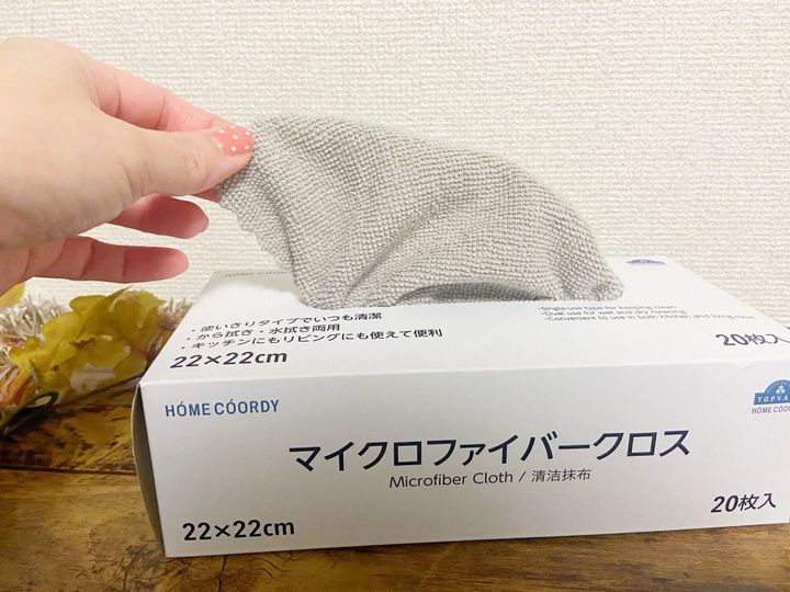 雑巾や掃除用のタオルは、洗って干して……と、使用した後のお手入れがめんどくさいと感じているズボラ主婦の筆者。このホームコーディのマイクロファイバークロスはティッシュのように1枚ずつ取り出して使う使い捨てタイプなので、気になる場所のお掃除でガシガシ使って最後はポイッ!と、お手入れの必要がありません。ズボラ主婦にとってすごくうれしいポイント。
