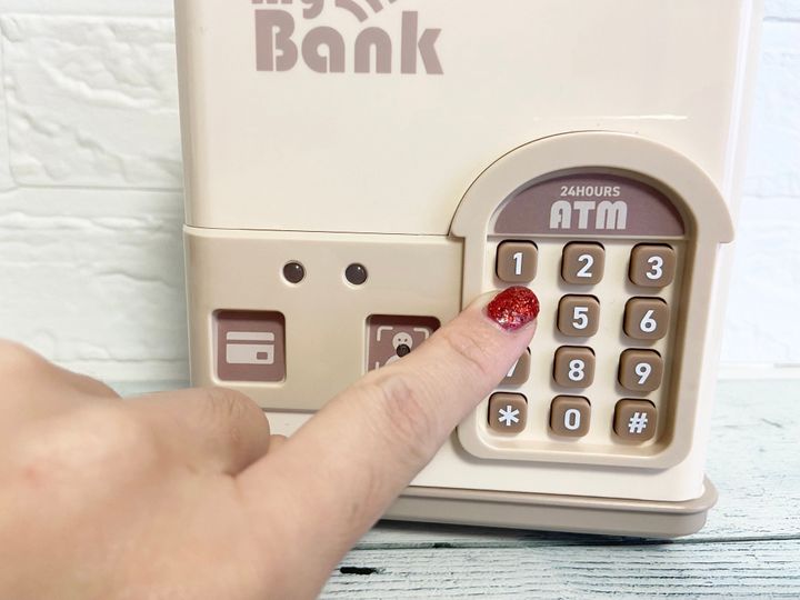 キャッシュカード以外にも、暗証番号でロックを解除することもできます。もちろん暗証番号は自分自身で決めるとことが可能です。本物のATM操作みたいでこれは子どもも大喜び!大人も使ってみると童心に帰って面白い!貯金が苦手な人も「電子貯金箱」を使った貯金なら頑張れるかも。