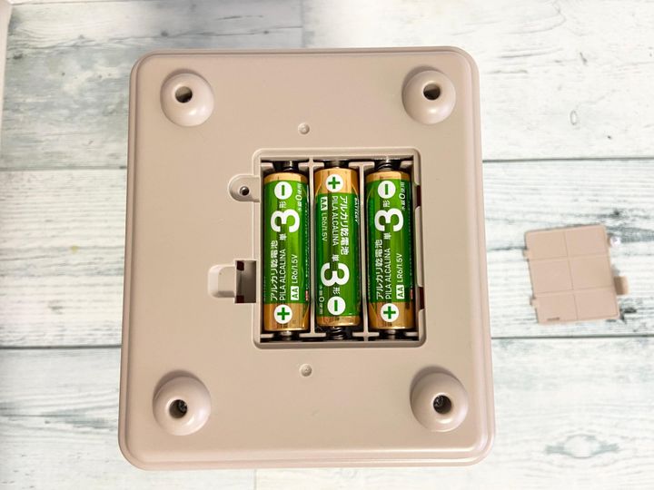 使用するためには、単3電池(別売り)が3本必要です。電池カバーにはネジが付いているので、セットするときはプラスドライバーが必要です。