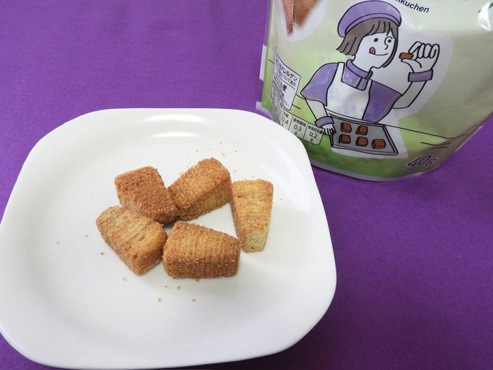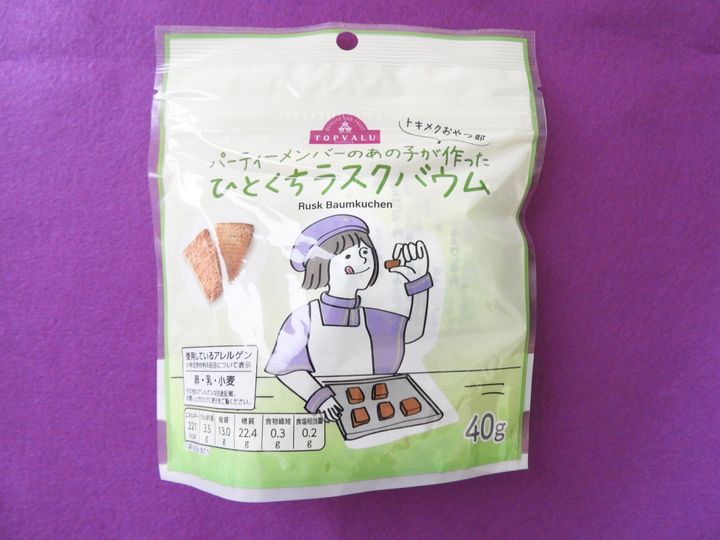 「トキメクおやつ部 パーティーメンバーのあの子が作ったひと口ラスクバウム」(213円)は、ひと口バウムをオーブンで再度低温で焼き上げラスクにしたおやつ。