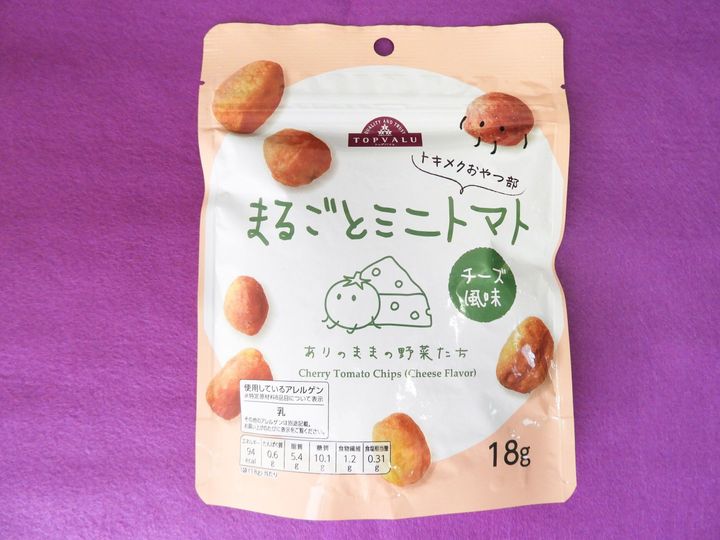 「トキメクおやつ部 ありのままの野菜たち まるごとミニトマト チーズ風味」(213円)は、新作野菜スナックの中で筆者が一番気に入っているおやつ。