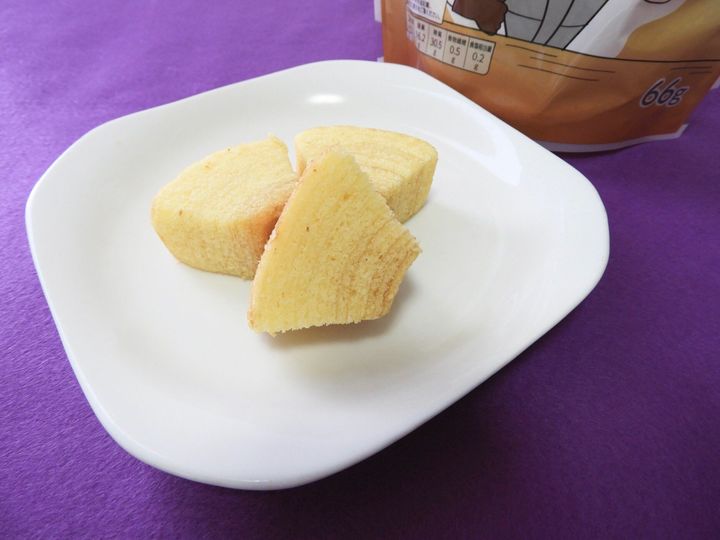 優しい甘味・ふわふわの食感のバウムクーヘンがひと口サイズにカットされています。ちょっとつまみたい・エネルギーチャージをしたいという時に食べたくなる! パッケージはチャックが付いているので一度に全部食べなくても大丈夫な点もお気に入りのポイントです。