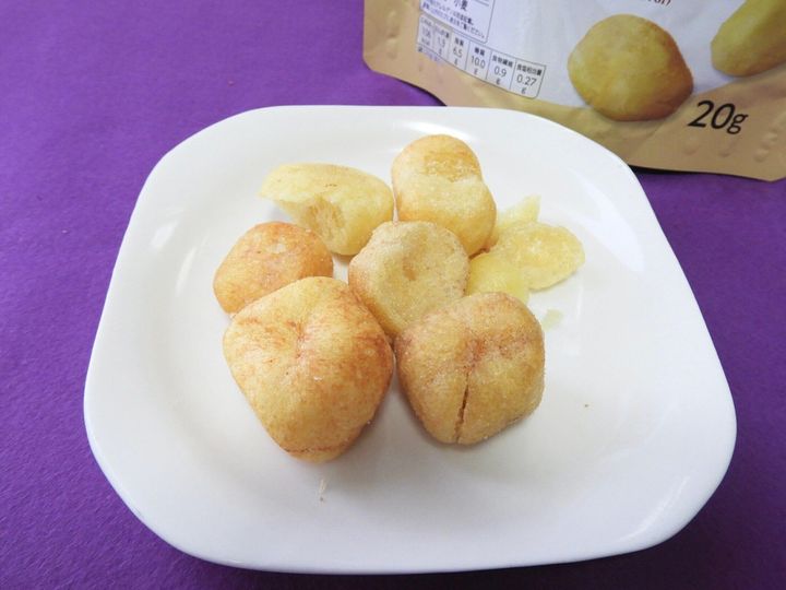 食べてみるとじゃがいもそのもの!少しはポテトスナック的な感じかなぁ~と思ったのですがほぼ野菜です。バターの風味もしっかりと感じることができて、なんだかサラダを食べているような感覚です。