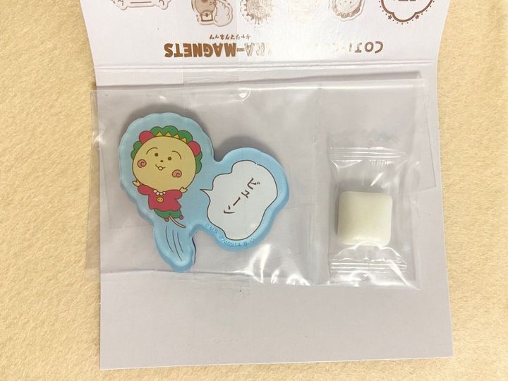 コジコジ キャラマグネッツはアクリル製のダイカットマグネットとソーダ味のガムが1個セットになっています。ダイカットマグネットは約50mm~70mm。ランダムで入っているので何が当たるかは開封してからのお楽しみ。