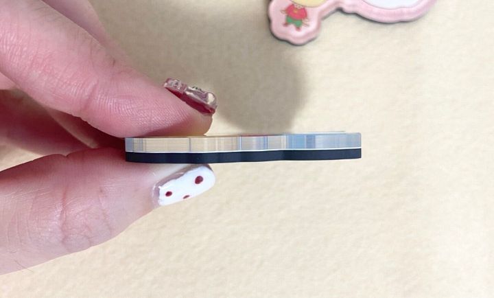 ダイカットマグネットは厚さもあり、想像していたよりもしっかりした作り。冷蔵庫にメモを貼るときに使用しても1~2枚のプリントなら問題なく使用する事ができます。