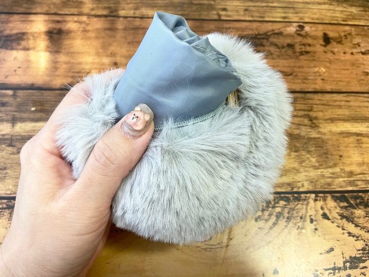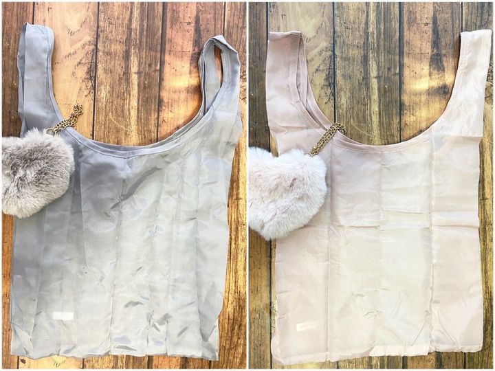 チャックを開けると、中にはエコバッグが入っています。そう!このチャーム、かわいいだけでなくエコバッグもセットになっている便利なアイテムなのです。チャームなら外出先で「エコバッグ忘れちゃった!」といううっかりミスも防ぐことができますね。