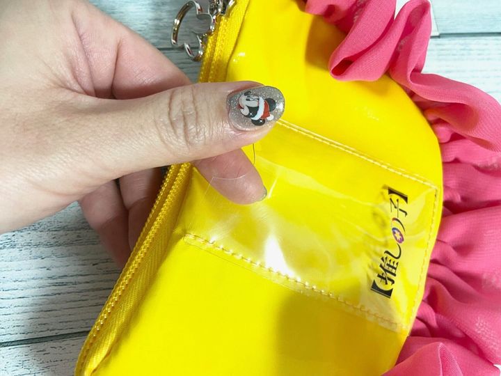 ポーチの裏面には、自由に写真やカードを入れ替えられる窓付き。推し活をしている人は、推しのトレーディングカードを入れるのにピッタリですよ。