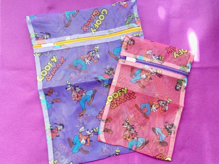 今回購入したアイテムの中で一番使用頻度が高いといっても過言ではない洗濯ネット。サイズ違いの2枚セットで、サイズは大きいネットが約縦40cm×横30.4cm 、小さいネットが約縦29.5cm×横20.1cmです。下着を入れたり、インナートップス類を入れるのにちょうどいいサイズ感。特に秋~冬はストッキングやタイツなどデリケートな素材の洗濯も増えるので何枚あっても助かるアイテム。