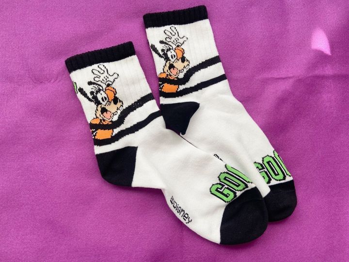 スポーティーなデザインでコーディネートに取り入れやすいソックス。筆者が購入したデザイン以外にも、ショート丈のソックスがありそちらはグーフィーとマックスがプリントされています。キャラクターアイテムを身に着けることに抵抗がある人もソックスならチャレンジしやすいかも。