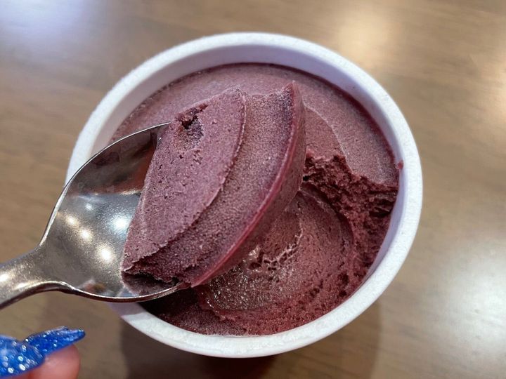 さっそく「お家でアサイーボウルS」を実食! アイスはシャーベットのような食感で味は結構さっぱりしている印象。今回はそのままの味を活かした「オリジナル」購入したのですが、アサイーの風味を感じつつも、クセがなく非常に食べやすい! アサイーにフルーツ果汁をプラスし、日本人でもおいしく食べれる味に仕上がっています。