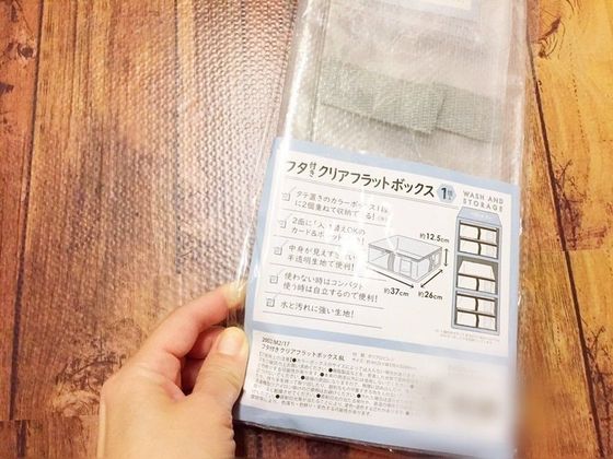 3coinsの公式Instagramでも紹介されていた「フタ付きクリアフラットボックス」300円(税別)