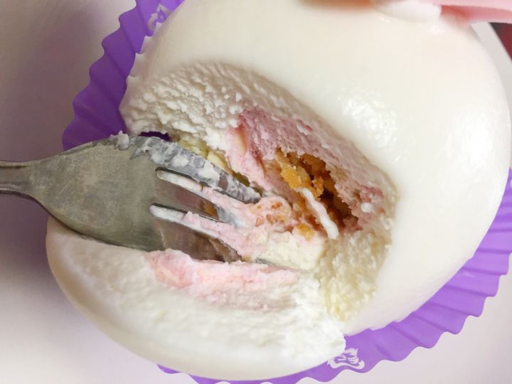 バニラクリームの中にストロベリーのクリームが忍び込んでいるのですが、少し酸味のあるレモン風味のクッキーがアクセントになっていて、甘すぎるスイーツは少し苦手になってしまった私でも食べやすかったです。