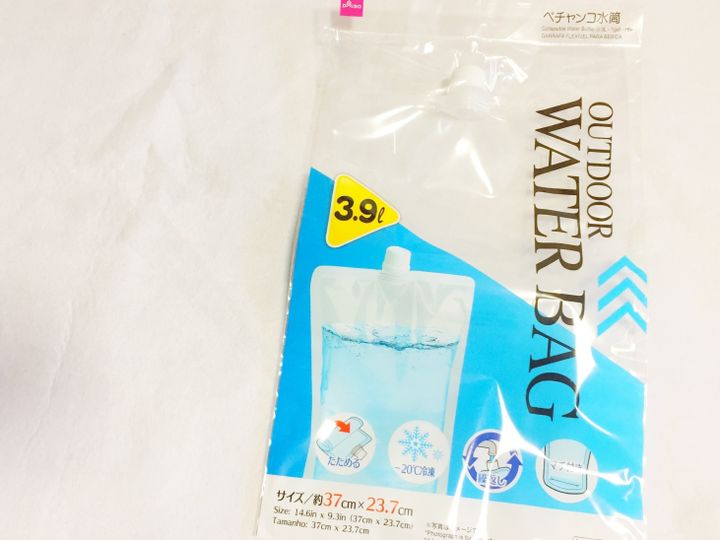 小さくたためてかさばらず約4リットルの水を入れることができるようです。