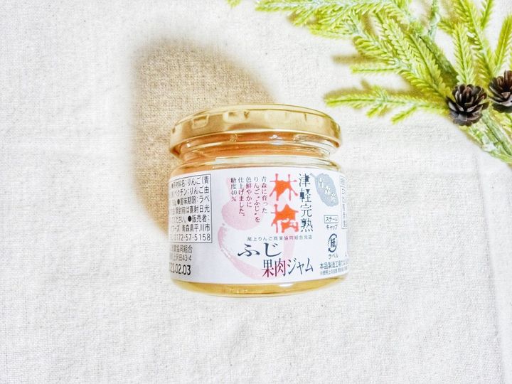 今回はこの「津軽林檎ふじ果肉ジャム」(486円が389円に割引)を購入しました。