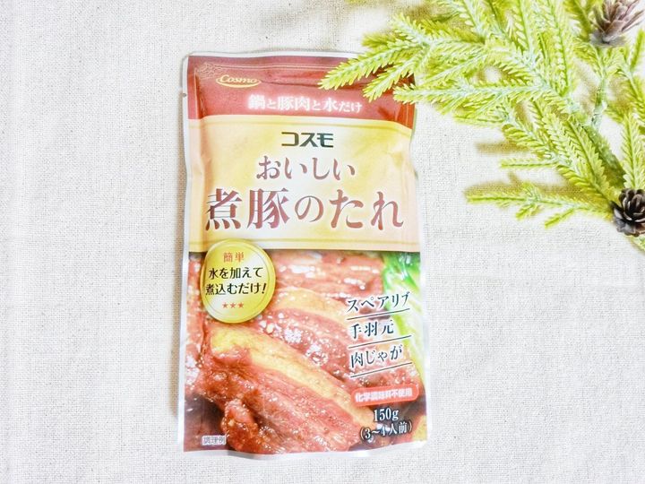 今回購入した「おいしい煮豚のたれ」(216円が162円に割引)は前回お店に行ったときに購入して、すごく簡単にすごくおいしい煮豚が作れたので、また食べたいと思いリピート購入しました。