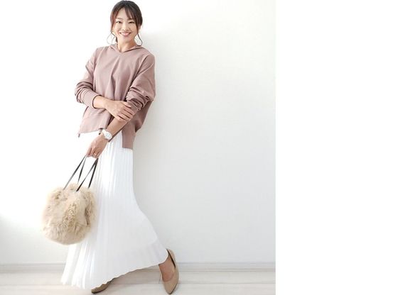 プリーツスカートを合わせれば大人カジュアルの出来上がり!