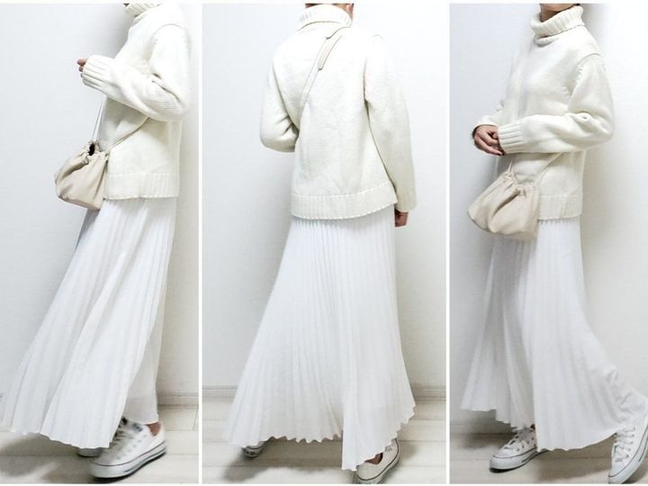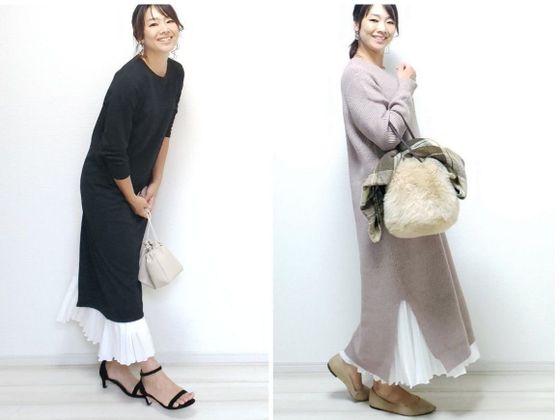 バッグや足元を変えれば同じワンピ×プリーツスカートでもだいぶ違う印象になり楽しめそうです。