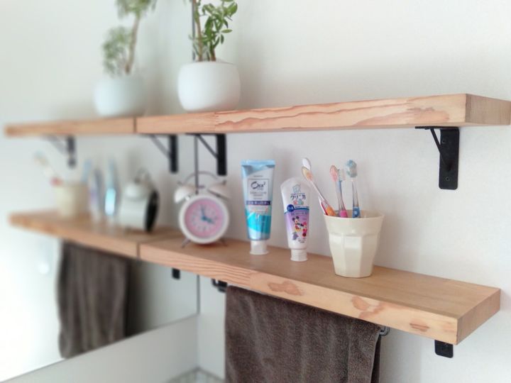 歯ブラシはこちらの飾り棚に出しっぱなしにしています。