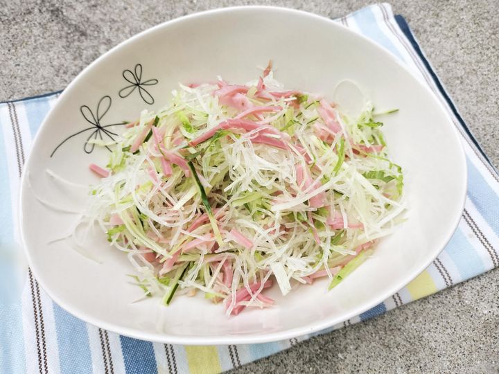 『大根サラダだよ』と言って出したところ、『それ昨日の刺身の残りでしょ、サラダとか言ってセコいなあ』と言われてしまいましたが、ラクで美味しいので、めげずに出しています。