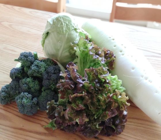 冷蔵庫・冷凍庫の残り物と収穫したお野菜↑↑を組合わせて1週間の簡単な献立を考え、買物メモを作り、まとめ買いします。