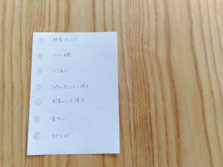 そしてメインだけの簡単なメモを作り、こちらをもとに買物リストを作っています。