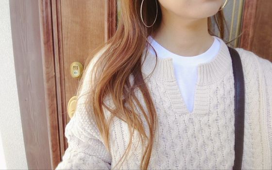 ↓写真で着ているアイボリー色のニットはGU、インナーのTシャツはUNIQLOのパックTです。ニットの下にTシャツを入れ込むだけで今年っぽい着こなしに♪ 最近のお気に入りの着方です。