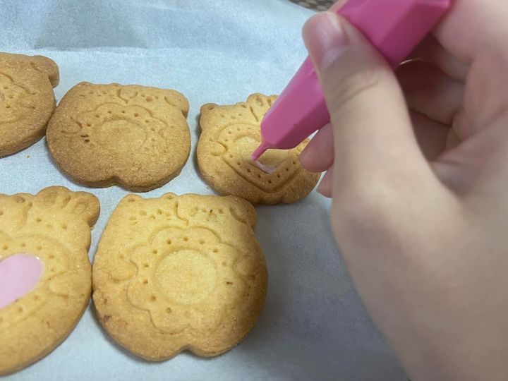 あとはクッキーの熱をとって、付属のチョコペンでデコレーションすれば完成~!!