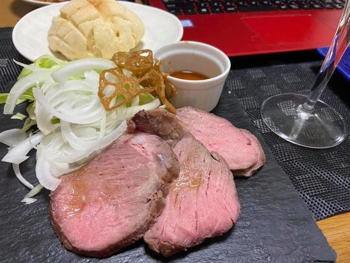 お肉の表面が焼けたらそのままオーブンに入れ1時間くらい120℃で焼きます!