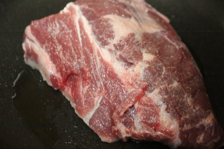 お肉の表面にしっかり塩(お好みで胡椒・ガーリックパウダーなど)をしてフライパンで焼き色が全体につくまで焼きます。