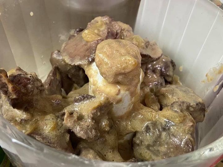 私が使ったのはレバー600gに玉ねぎ1個、マギーブイヨン3個、生クリーム100ccくらいです。