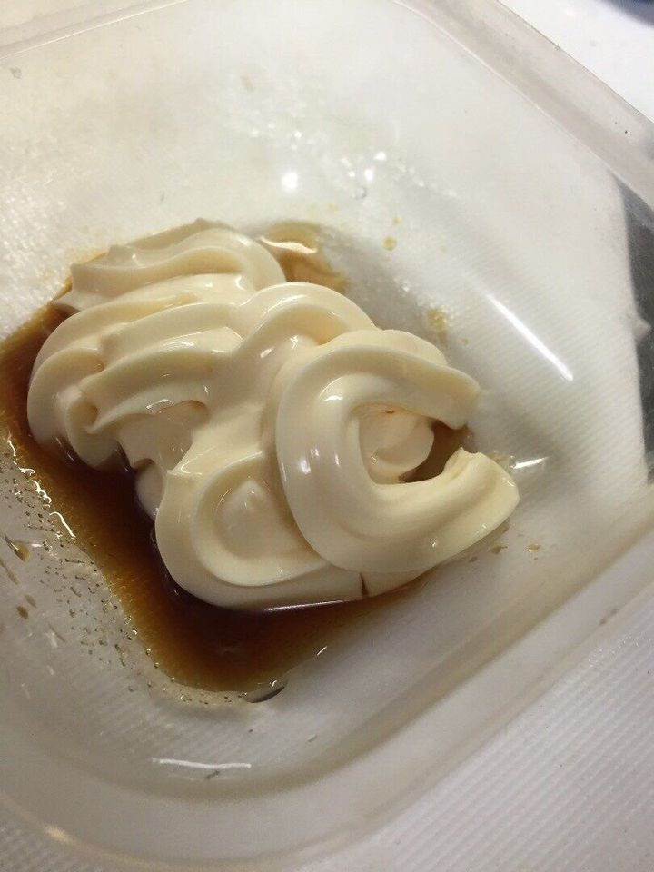 お砂糖と醤油を混ぜた中にマヨネーズを加え照り焼きマヨ!を作ります。