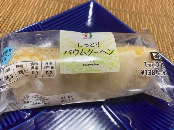 これもコンビニのバウムクーヘンって昔は口の中の水分全部もってかれるんじゃない?みたいな物も多かったと思うのですが、パッケージに「しっとりバウムクーヘン」って書いてあるこの一品!本当にしっとりでした!!