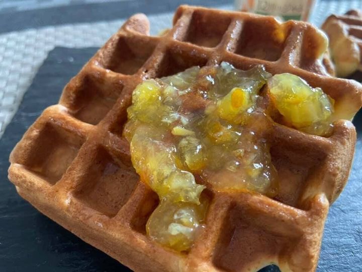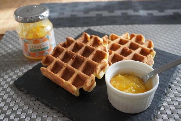 ワッフルはホットケーキミックスで簡単に焼いたものですがさくっとふわっとしたワッフルにネーブルオレンジの甘さがぴったりで美味しかったです。