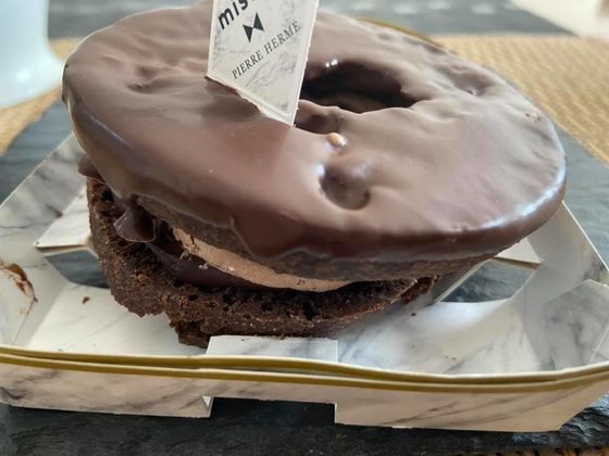「ふわり、とろり、かりかり」の3種類の食感を組み合わせたピエールエルメのキャレマンショコラをドーナツで表現してあるんだそう!