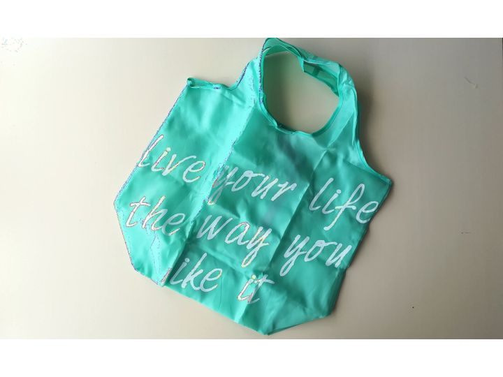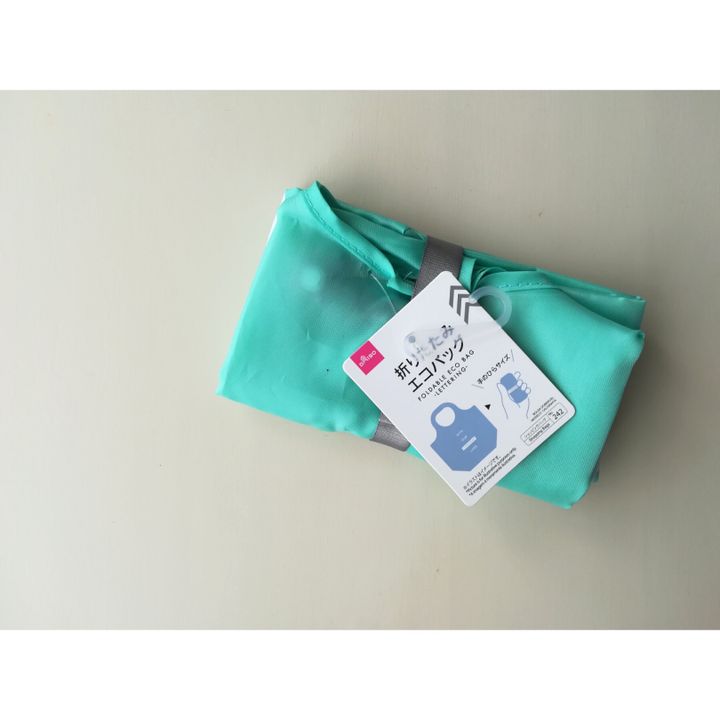 折りたたんだ時に、まとめる為のスナップボタン。まとめる時にも、使う時にも役に立ちます。キレイ色で100円には見えないので、サブバッグとしてだけでなく、ちょっとの買い物の時はメインバッグとしても使ってます。