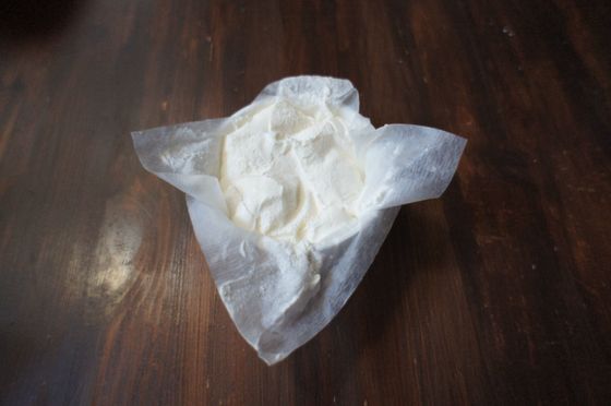 周りの布を丁寧に広げてあげると真っ白のふわふわなレアチーズが!!見た目からやわらかさが伝わってきます!まさしく某有名店のレアチーズケーキのよう!